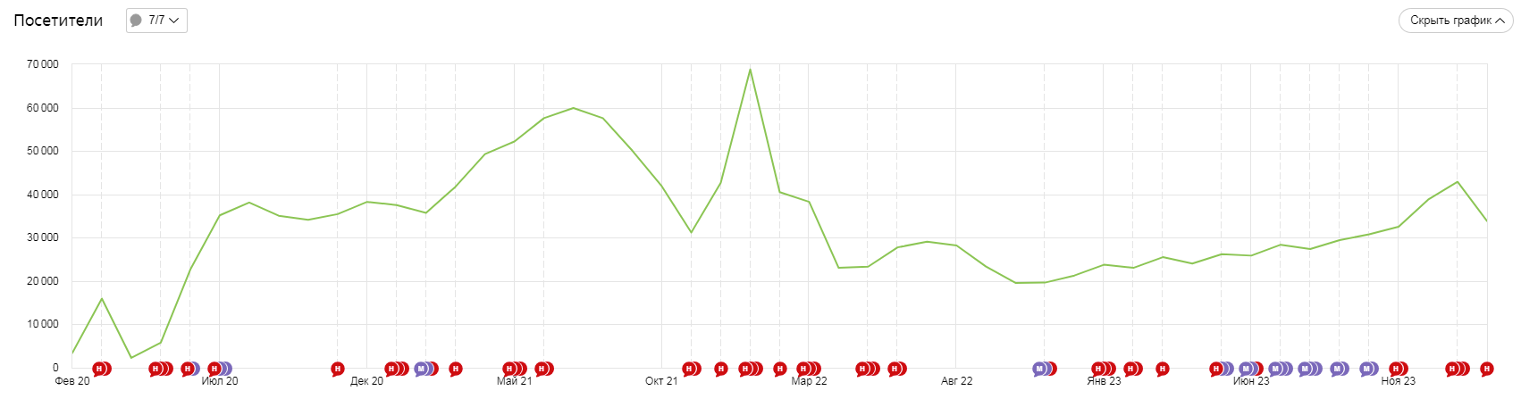 Все это в итоге положительно влияет и на позиции сайта в поиске в целом. Кстати, даже спустя 4 года статьи продолжают приносить на сайт от 20 до 40 тыс. посетителей ежемесячно.